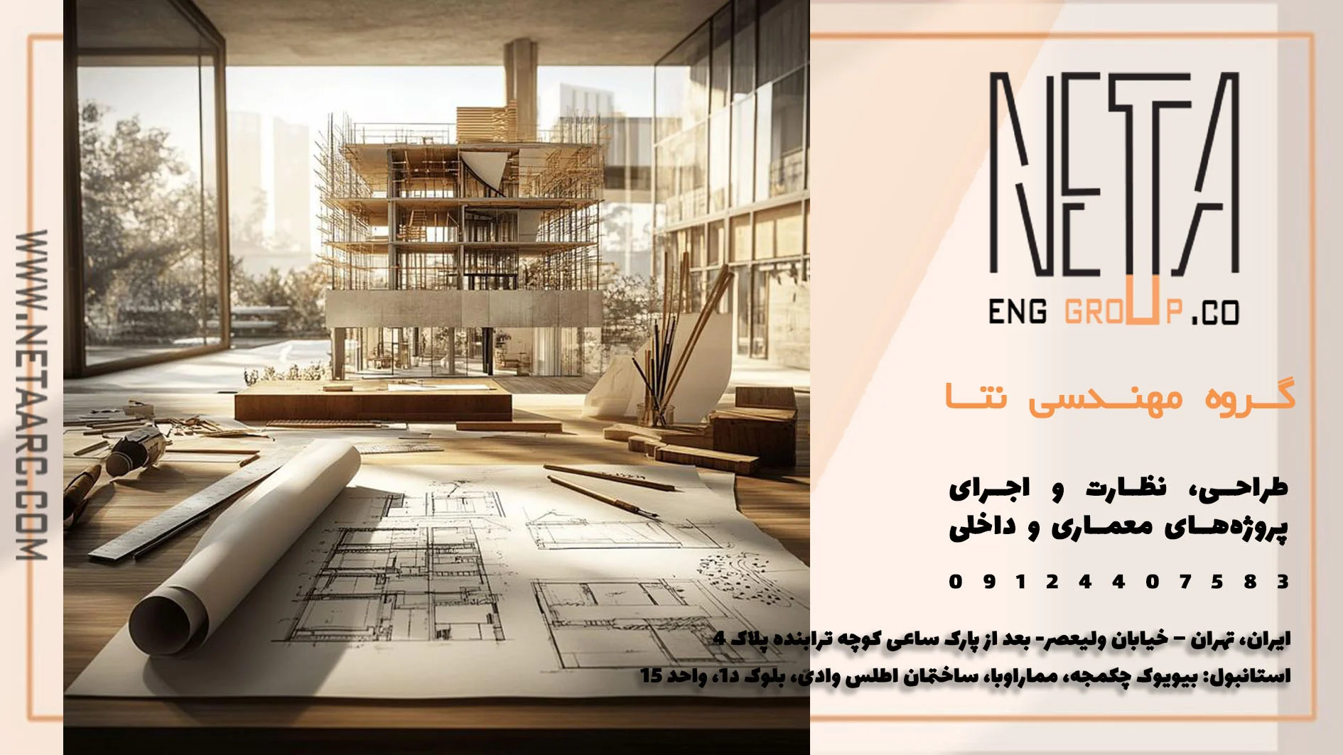 گروه مهندسی نتا متخصص در زمینه ی طراحی و معماری ساختمان از نما تا دکوراسیون داخلی است ؛ برای کسب اطلاعات درباره ی اصول طراحی نقشه فاز یک با رعایت ضوابط شهرداری و استاندارد ها ،حتما به مقاله ی”صفر تا 100 طراحی فاز یک معماری؛ از ضوابط شهرداری تا استانداردهای آتشنشانی“، سر بزنید.
